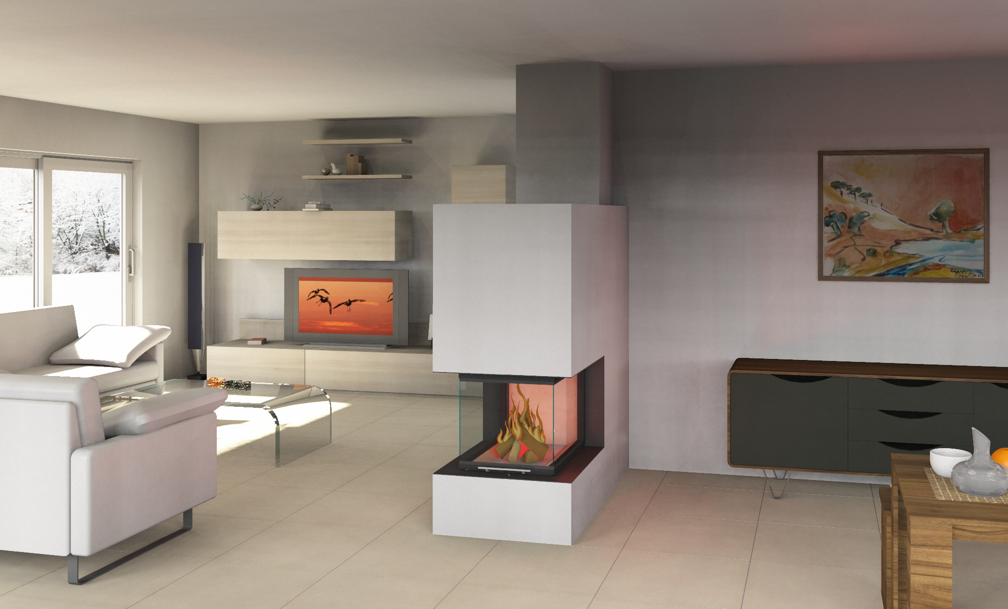 | Hier werden Feuerträume erfüllt. Von einer Kaminanlage über Kachelöfen oder Herdanlagen bis Gartenkaminen ist alles möglich. Schicken Sie mir Ihre oder die Vorstellungen Ihrer Kunden und ich setze diese Fotorealistisch um. Sie erhalten dann einen Grundriss und eine Ansicht jeweils im Maßstab. In den meisten Fällen zwei fotorealistische Perspektiven. Es sind aber auch noch weitere Feature möglich. Ich erstelle Ihnen von der Zeichnung eine Move-Datei. Sie laden diese auf Ihr IPad und machen mit Ihrem Kunden einen virtuellen Rundgang durch sein neues Wohnzimmer mit der von Ihnen gestaltet Kaminanlage. |